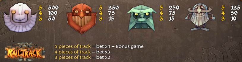 Начать стоит с Бомбы, которая в роли дикого символа. Соответственно, с ее помощью у вас получится заканчивать выигрышные линии даже если там не хватает определенных символов, Бомбы легко их заменят. Если выпадет 3 изображения с Надписью Free Spins, то вы получите бесплатные вращения. Также есть и доступ к бонусной игре за счет изображений с надписью Railtrack. Переместится в дополнительный раунд получится собрав 3 таких символа.
