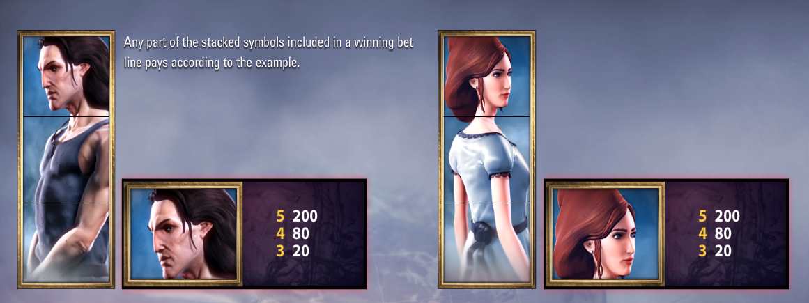 В принципе карточные символы здесь являются рядовыми и по своим коэффициентам стоят меньше остальных. Персонажи истории про Дракулу помогут вам заработать уже больше, так что они более ценные. Также стоит выделить дикие символы, а именно букву W и изображения главного героя вместе с девушкой. Именно эти картинки заменят недостающие на выигрышной линии и соответственно помогут вам зарабатывать чаще.