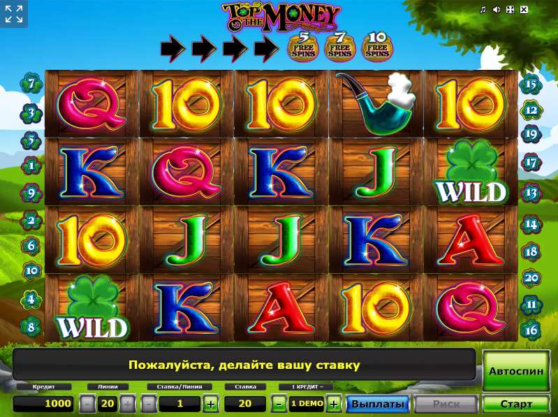 Ирландский фольклор считается одним из самых интересных и познавательных. В нем описываются различные существа, но наиболее известным является зеленый лепрекон. Он был взят за основу для сюжета популярного слота на деньги от Novomatic – Top `o the Money. Волшебник-лепрекон всегда носит с собой горшочек с золотом. Каждый гемблер может заставить его отсыпать несколько ценных монет, вращая барабаны слот-аппарата Top `o the Money. Модель предлагает массу возможностей для составления выигрышных комбинаций с крупными коэффициентами выплат. Этим и обусловлена ее популярность среди любителей игровых автоматов Вулкан на деньги.